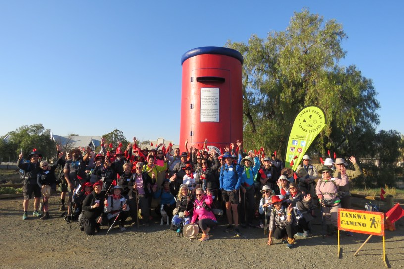 All the hikers of the Tankwa Camino of August 2019 … with our red flags tugged in behind our backpacks, we’ve showed eager- and readiness!