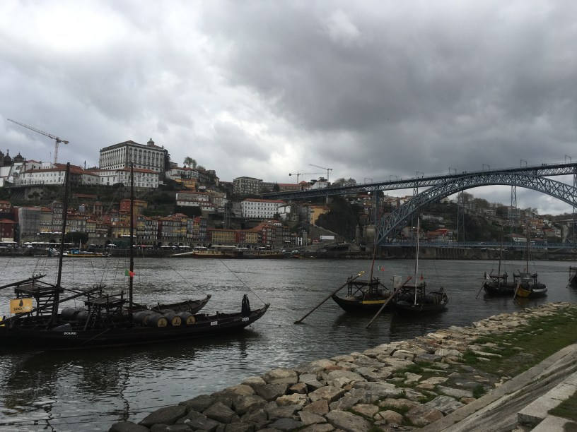 Update: This photo was taken in 2018 during our Portuguese Camino in Porto. This was on the 14th day of our pilgrimage, and although it was cold and cloudy, Porto was still one of the most beautiful cities we saw during our Camino in Portugal. In this photo are the famous Rabelo boats on the Douro River.
