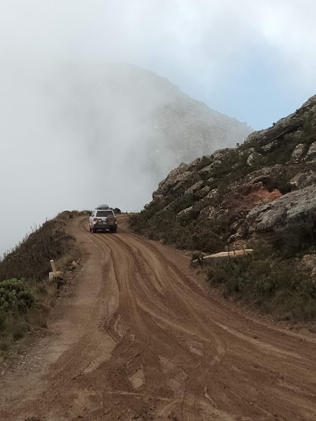The mist only lifted for a few minutes and we could enjoy breathtaking views of the Klein Karoo in the south and the Groot Karoo in the north. It was definitely worth riding out this pass in wet conditions to see so much beauty.