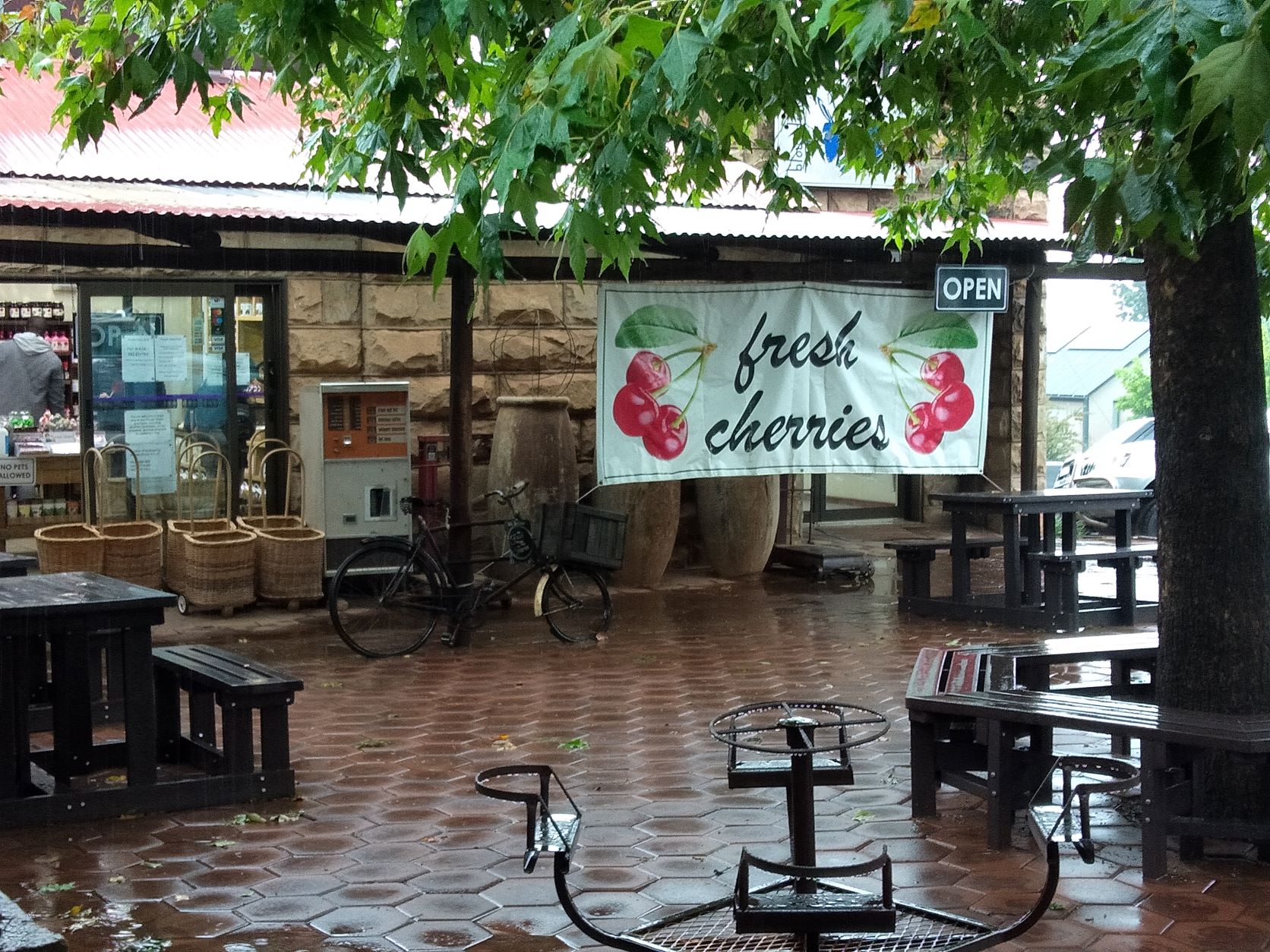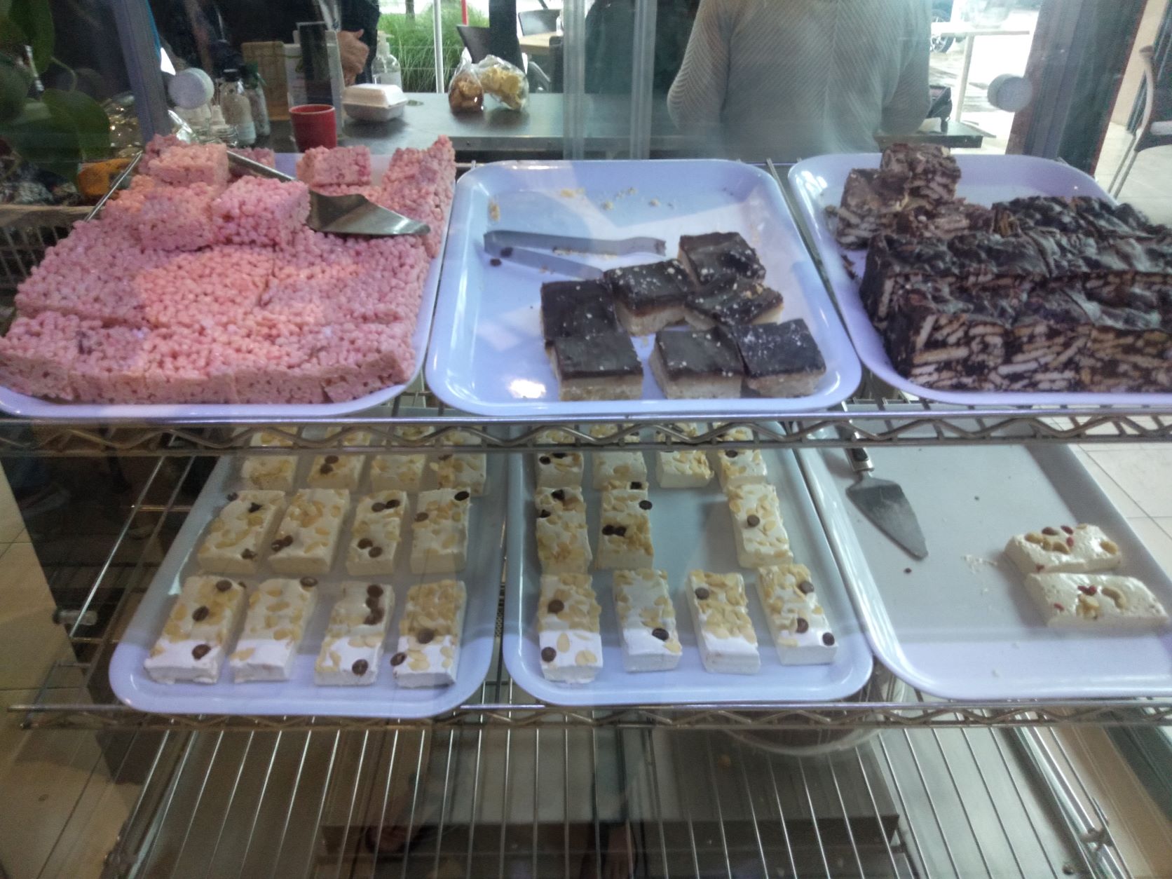 This coffee shop/bakery is a real gem in Clarens. The service was friendly and the food looked delicious. We bought takeaway coffee and sat down at one of the inside tables while the rain fell hard and continuously.