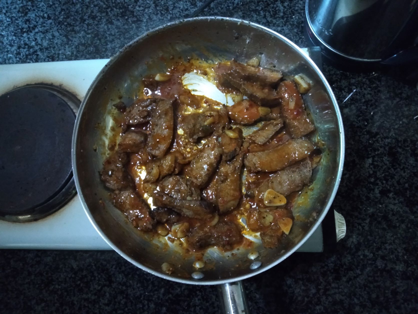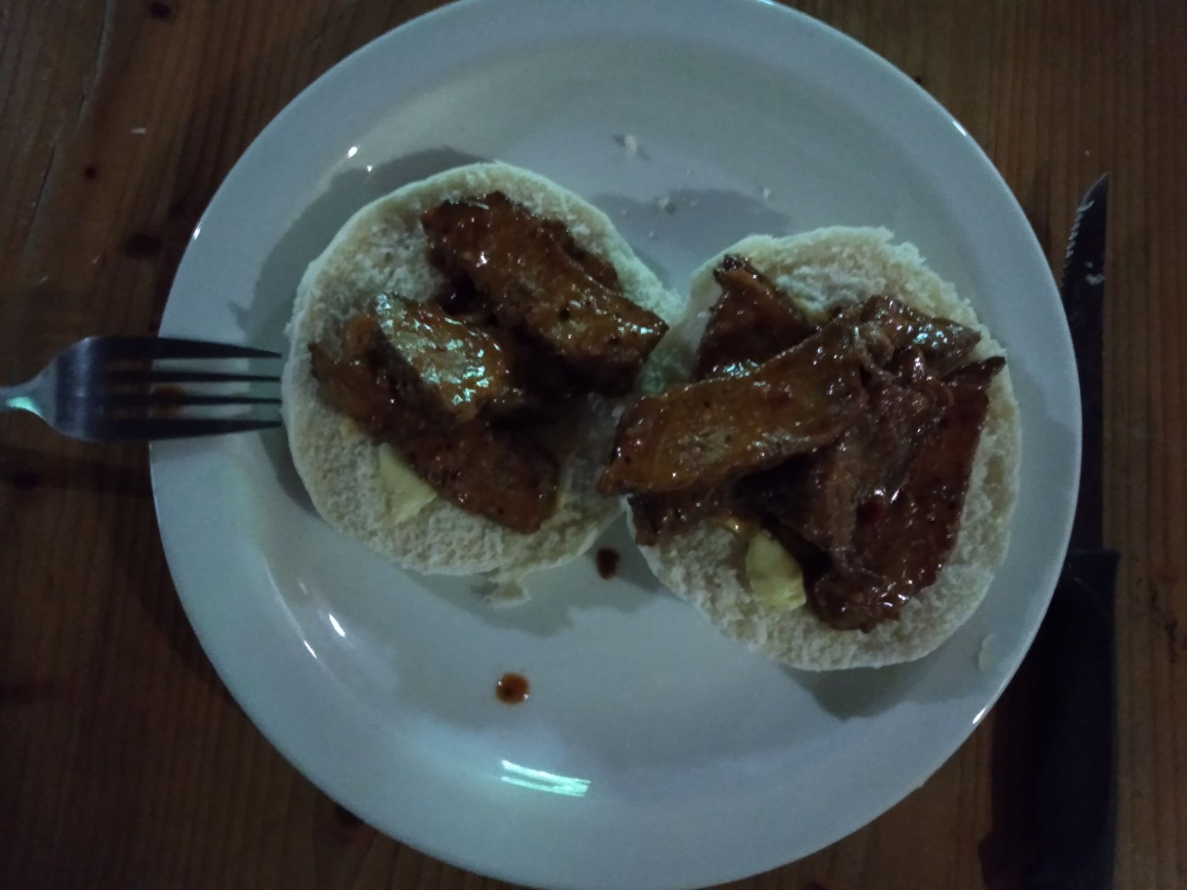 Berto prepared a delicious lunch. He took the leftover steak from last night, cut it into strips and then pan fried it with garlic along with one of our favourite sauces, Nando’s Bushveld Braai Sauce. We then added these on top of the freshly baked buns we bought earlier in Clarens. It was the perfect meal for a cold and rainy day.