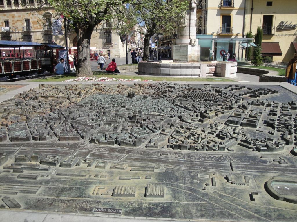 On our walks through the old town, we noticed a large model of a city plan of the city of León structured on the ground. And as it was spring, it was also surrounded by pretty flowers.