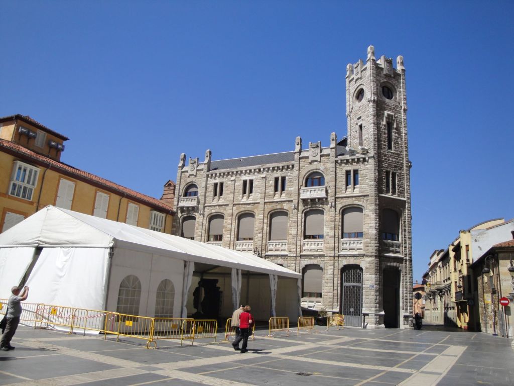 León’s Plaza Mayor is a graceful space, surrounded by colonnade arches, multi-coloured buildings and charming balconies. Most of these buildings date from 1672 – 1677. Everywhere in the Plaza was yellow barricades and steel pavilions for the Easter processions that would take place during the weekend.