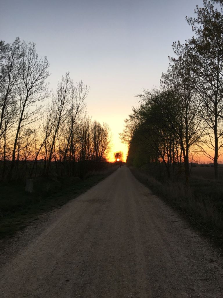 Long dirt roads on the Meseta (the large and expansive flat plains on the Camino Frances)