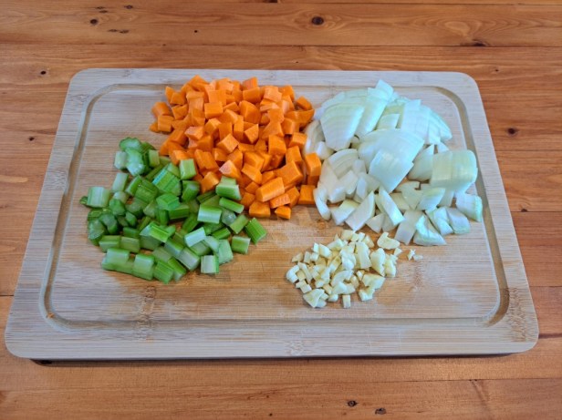 Chopped veggies, spices and flour