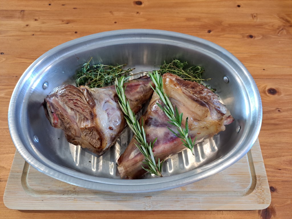 Browned lamb shanks