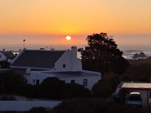 With a glass of wine in hand, we watched the beautiful sunset from the balcony. What a lovely day we had on the West Coast of South Africa.