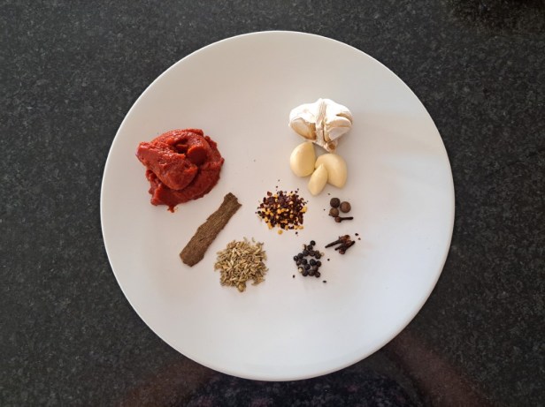 Garlic and tomato paste with the spices