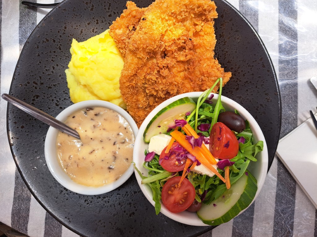 The food was excellent and traditional South African dishes are served in generous portions. Among other things, there was steak, chicken schnitzel, tripe (my mum’s choice) and the traditional ‘Hunter’s Choice’ which consists of venison steak and sausage.