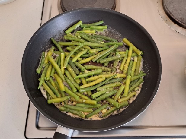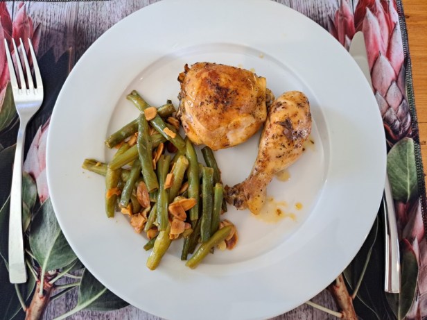 The crunch of the almonds works surprisingly good with the green beans … with the roasted chicken it was a real winner.
