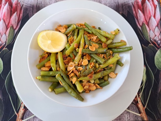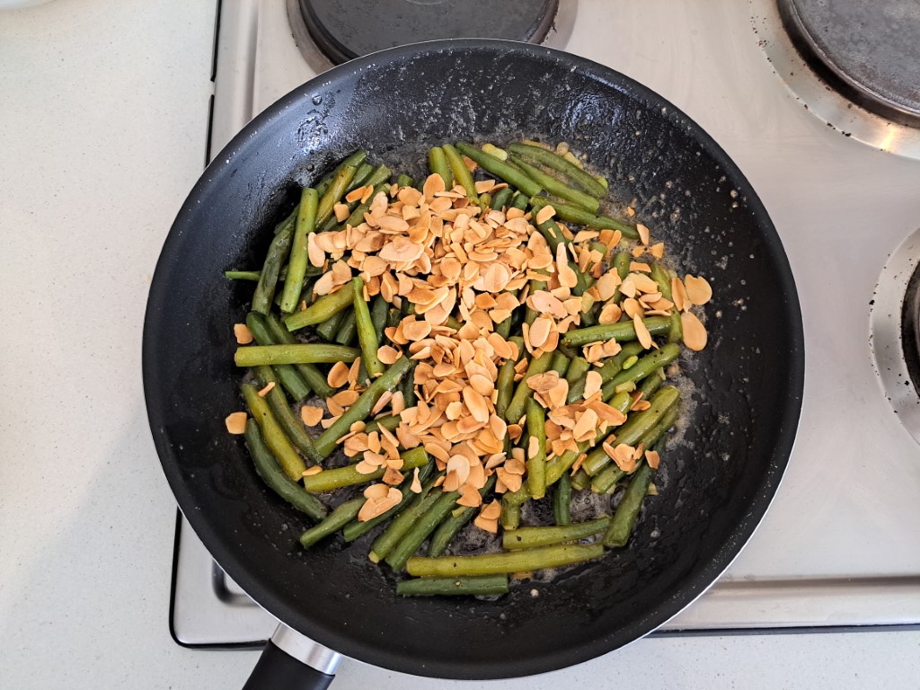 Scatter the toasted almonds over the green beans and add the juice of the lemon. (You can also add some of the pulp of the lemon for extra flavour).