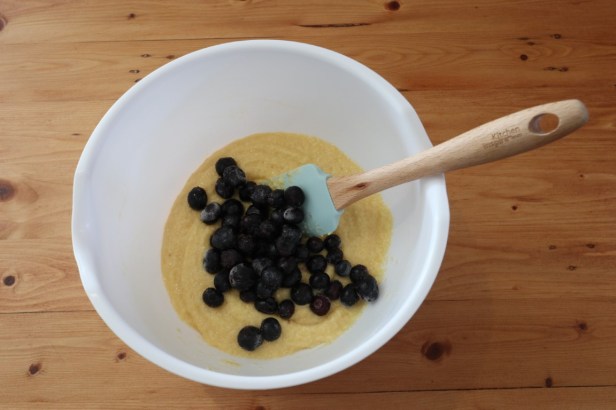 If using frozen blueberries, bake for about 27 minutes. But if you use fresh blueberries, they should be ready after 18 minutes. Muffins are done when golden on top and no longer spongy.