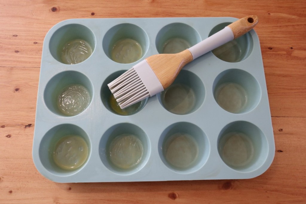 Add muffin liners to 9 slots in a muffin pan or grease each muffin cup with butter/oil. (I love my silicone muffin pan, but of course any muffin pan works just as well). Fill the muffin cups to the top.