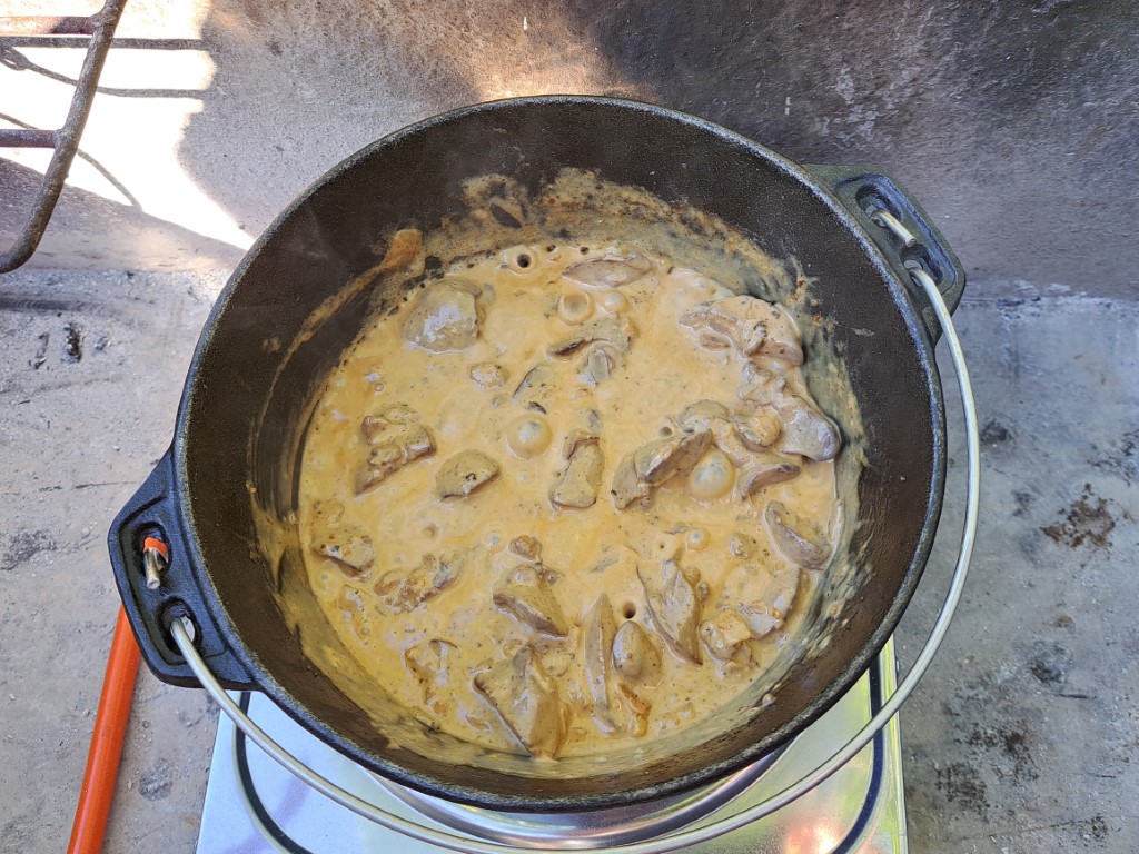 Ons maak hoenderlewers ook nie gereeld nie – eintlik net wanneer ons kamp omdat dit so vinnig en maklik is om voor te berei. Die Kwelera Rivier is prentjiemooi … ek vertel binnekort meer van ons eerste kamp hier aan die suidoostelike kus van ons land!