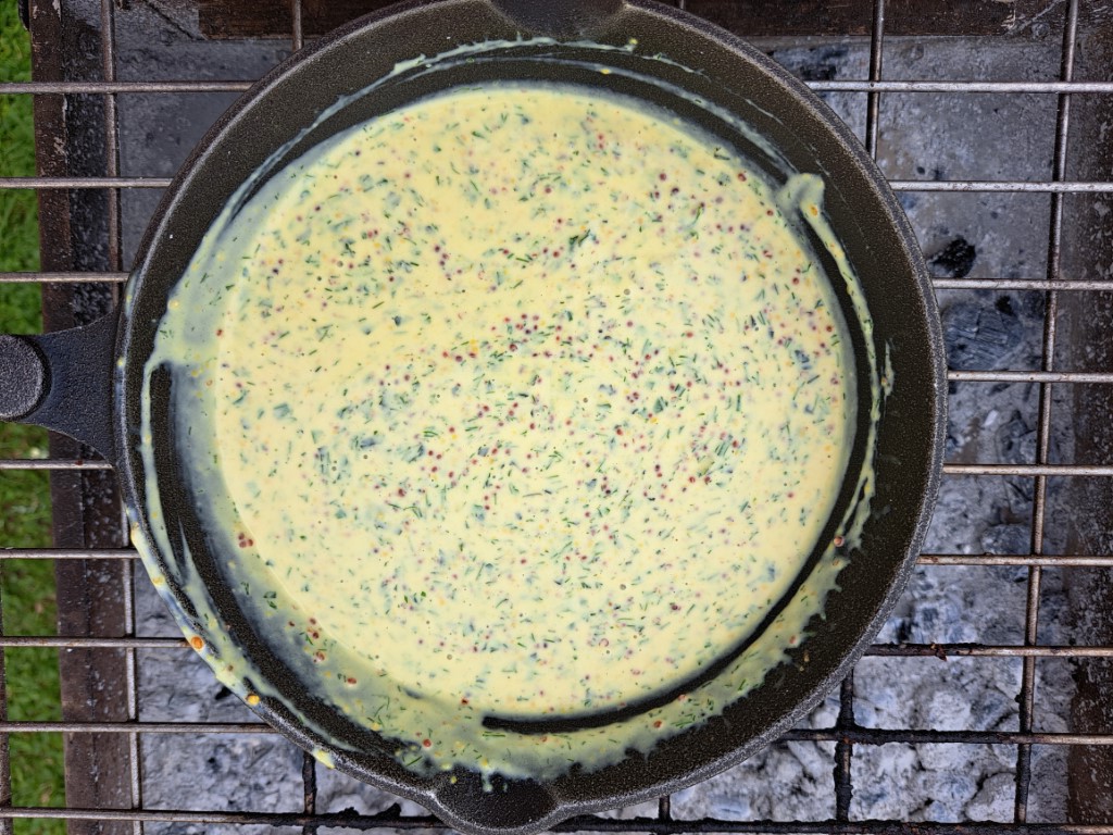 The creamy mustard sauce is quick to prepare – it basically just needs to be heated.