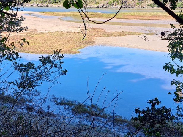 River with the waves of the Indian Ocean visible in the background
