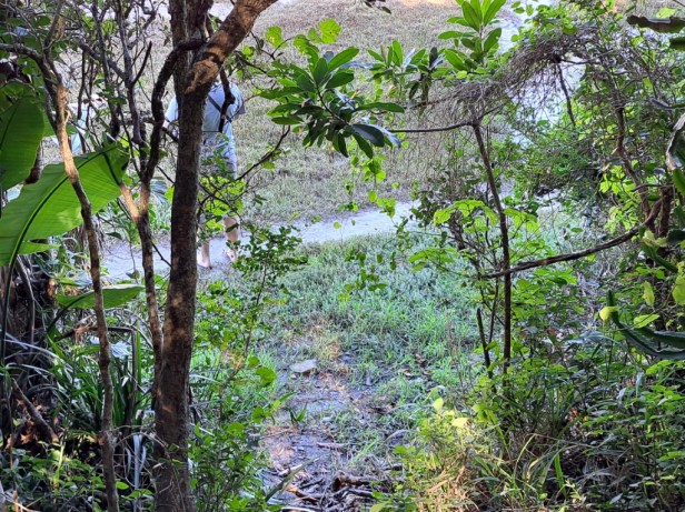 Finally, the forest path leads onto the beach
