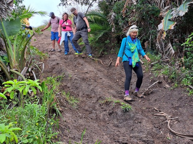 The boat was not big enough for everybody and we split into two groups. The German tour group got on the boat first while the rest of us stood on the shore getting to know each other better. We had a good laugh with two women in our group – they wore makeup and were beautifully dressed with lovely handbags. The one woman said her husband booked them for a boat cruise, but mentioned nothing about a hike through bushes and over rocks (imagine that conversation between them later on)!