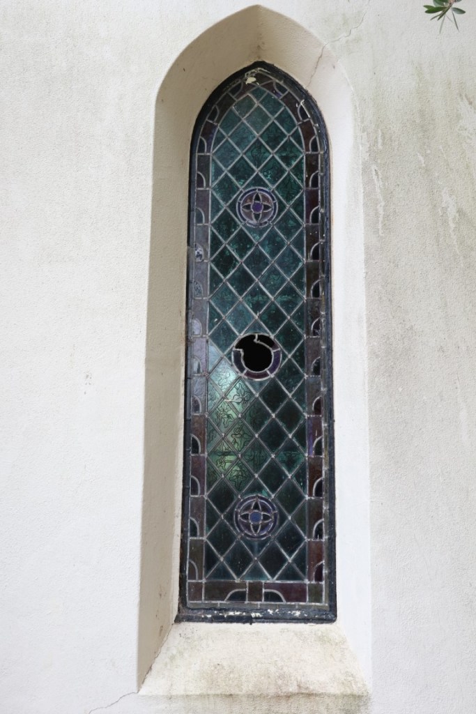 What a unique bridge and how amazing where it came from. I love those church windows and the flowers are beautiful! I love waking through old cemeteries and looking at the names and dates on the headstones.