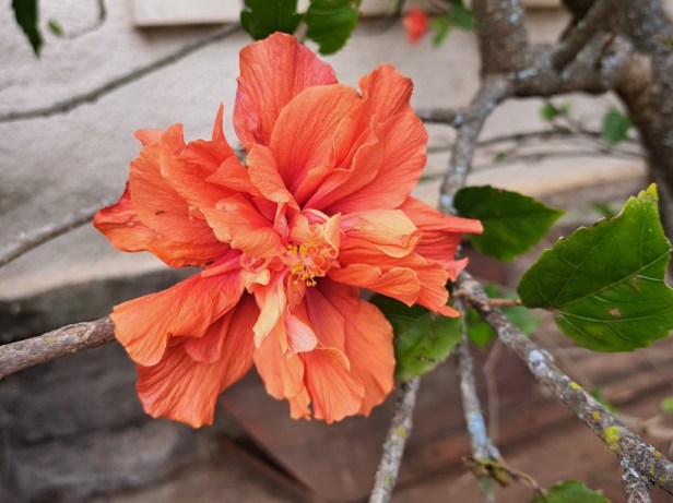 Ons is deesdae so gewoond daaraan dat ou geboue en tuine in klein dorpies in SA verwaarloos word, dat ‘n mens amper uit jou vel wil spring wanneer jy op so ‘n stukkie juweel soos hierdie kerk en kerkhof afkom. Dis die mooiste hibiskusblom, ne? Hier’s ‘n geheimpie: Daar het ‘n mooie op die grond gelê wat ek opgetel en saamgebring het huis toe – dit het vir ‘n hele week gesorg vir die mooiste kleur in die kombuis 🙂.