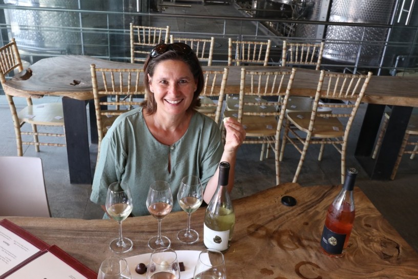 My friend introduced me to Sonja, who runs the wine tastings and sales at Hidden Valley. I haven’t met anyone so cheerful and welcoming in a long time. Riana, my friend, suggested that I do a wine and chocolate pairing and Sonja was on hand to offer a fun and delightful wine tasting.
