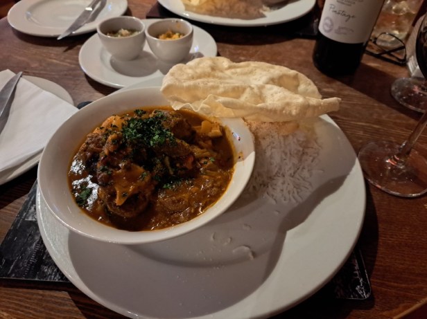 The restaurant was fully booked with an overseas tour group, but fortunately they could accommodate us in the bar. And we were very happy about that, because the Chef’s Lamb Curry with a Cape Malay influence was probably the best we have ever eaten!