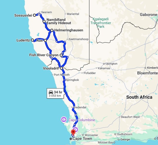 Here then, is a brief summary of our 8-day road trip of 3,053km/1,897 miles through the incredibly beautiful southern part of Namibia.