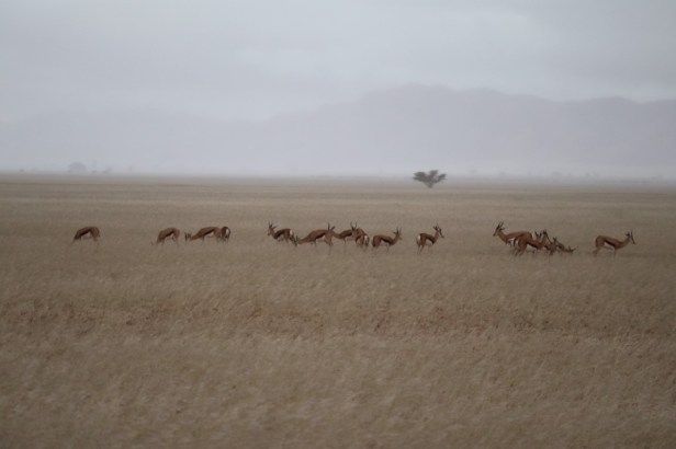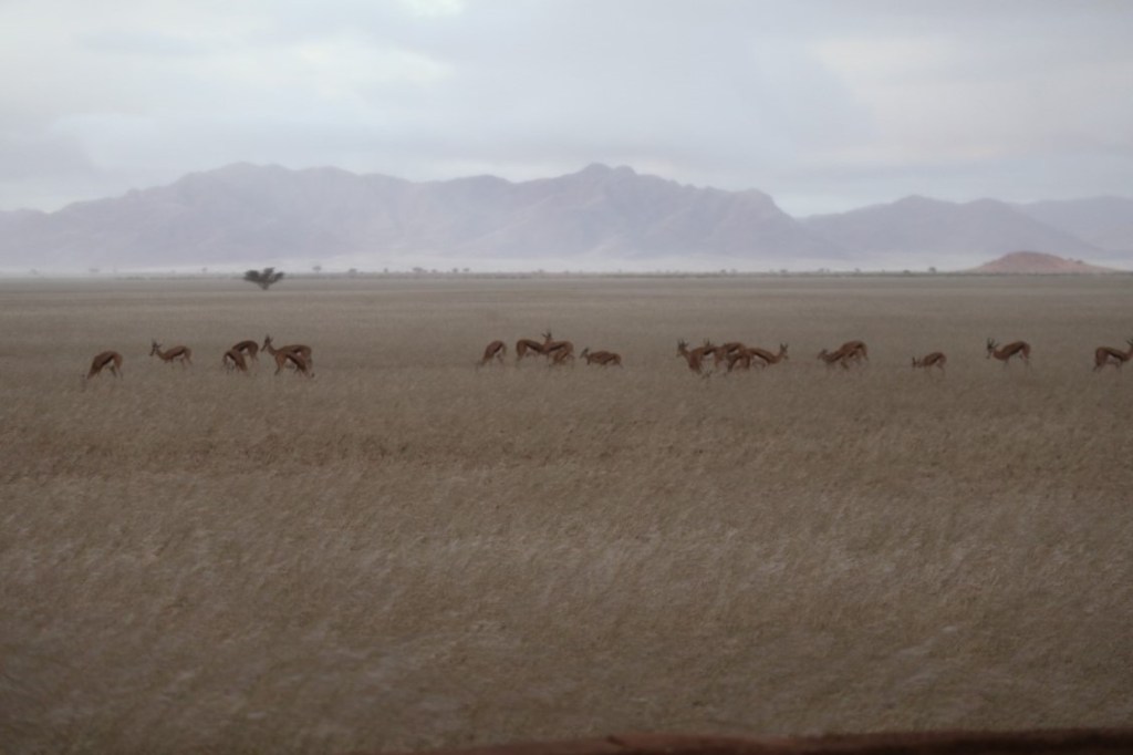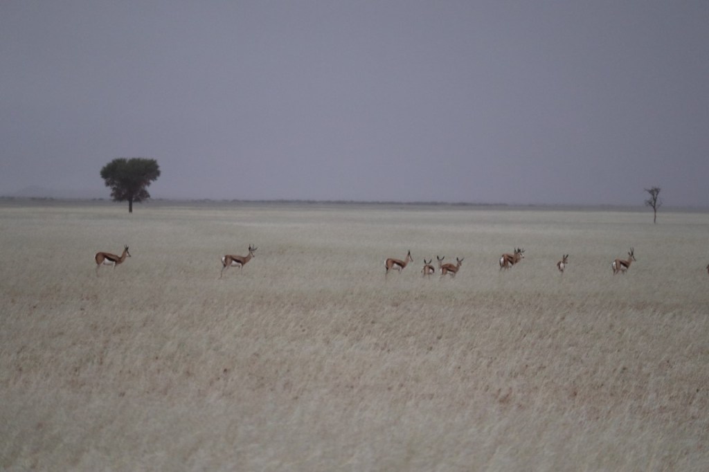 So, it seems that it was a good time for both of us to visit the different deserts to experience the improbability of rain! Absolutely – it almost felt like the oryx and springboks came to visit us, that close they were 😉.