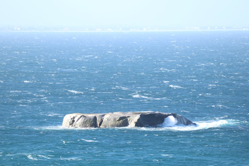 It was now time to climb back into our ‘bakkie’ and take the winding road up Red Hill to search for Just Nuisance’s grave. On the way, we stopped at a viewpoint to admire the view over Simon’s Town, the harbour, stunning beach, and False Bay.