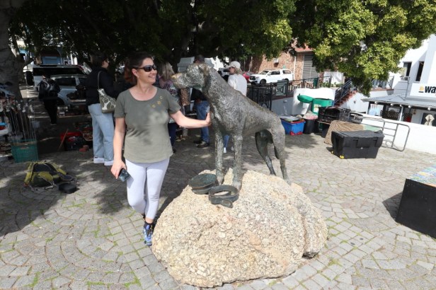 After an amazing morning on the beach with the penguins, we drove into town and parked at Jubilee Square. From here, it’s easy to explore the streets of Simon’s Town on foot. In the square, there’s a lot of arts and crafts, making it a good place to buy souvenirs and gifts. There are quite a few coffee shops and restaurants, and you can’t miss the monument of Just Nuisance, the Naval Dog. All this while you have a beautiful view of the harbour.