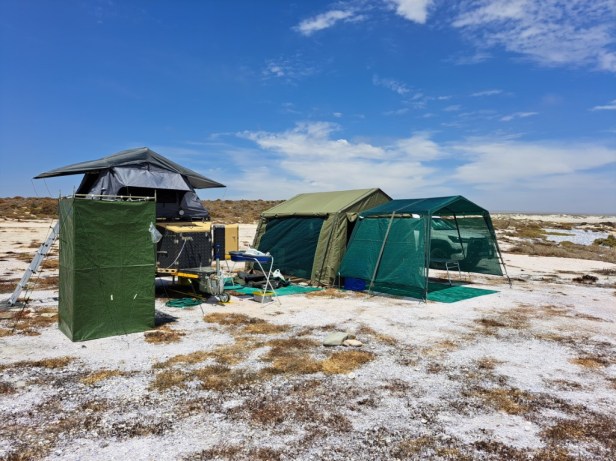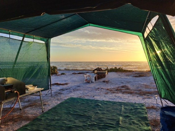 If you read our previous post (click here), you’ll remember that I mentioned we arrived at our campsite just before dark after getting stuck in thick sand. In today’s post, we are going to show you what our wild camping setup looked like. For two weeks we were cut off from the outside world – no radio, television, or Wi-Fi.