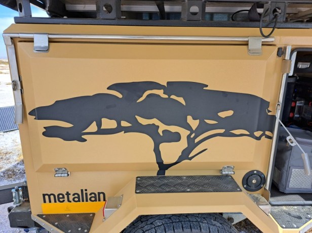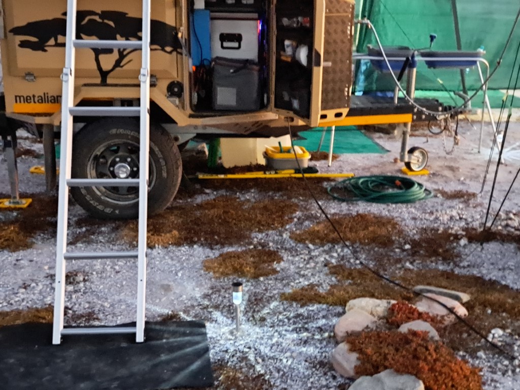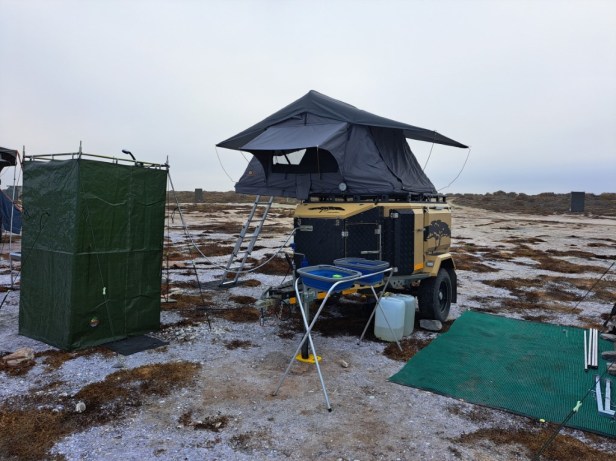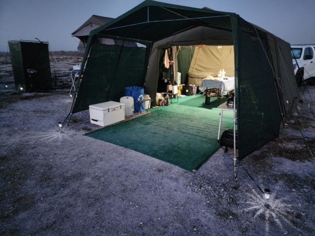 With the solar panels charging the batteries during the day, we had enough light in the evenings when we were in the diner- and rooftop tents. But when we switched off all the lights late in the evening, it was quite dark. I brought a few outdoor solar lanterns from home that automatically switched on when it gets dark. These provided enough light in case we needed to get up during the night. It was actually so great that I sometimes stayed longer than necessary outside during the night just to watch the lovely glow provided by the lanterns.