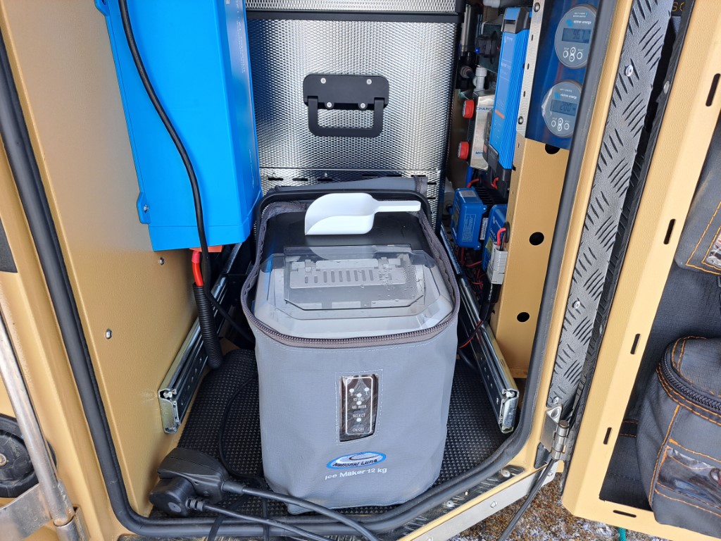 I mentioned in previous posts that Berto bought an ice machine for camping. What’s better than drinking a glass of wine chilled with a few ice cubes next to the ocean on a hot day? The ice machine really came in handy, and I made quite a few bags of ice which I stored in the freezer until we needed them. How luxurious is that for wild camping?
