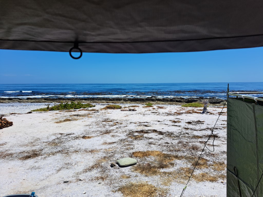 When we booked our campsite with Theresa at the farm Waterval, we chose Skulpbank 52. If you were to translate ‘Skulpbank’ into English, it would be ‘Shell Bank’ or ‘Place of shells’. It definitely lived up to its name, as millions of tiny white seashells were spread out like a carpet in front of our campsite.