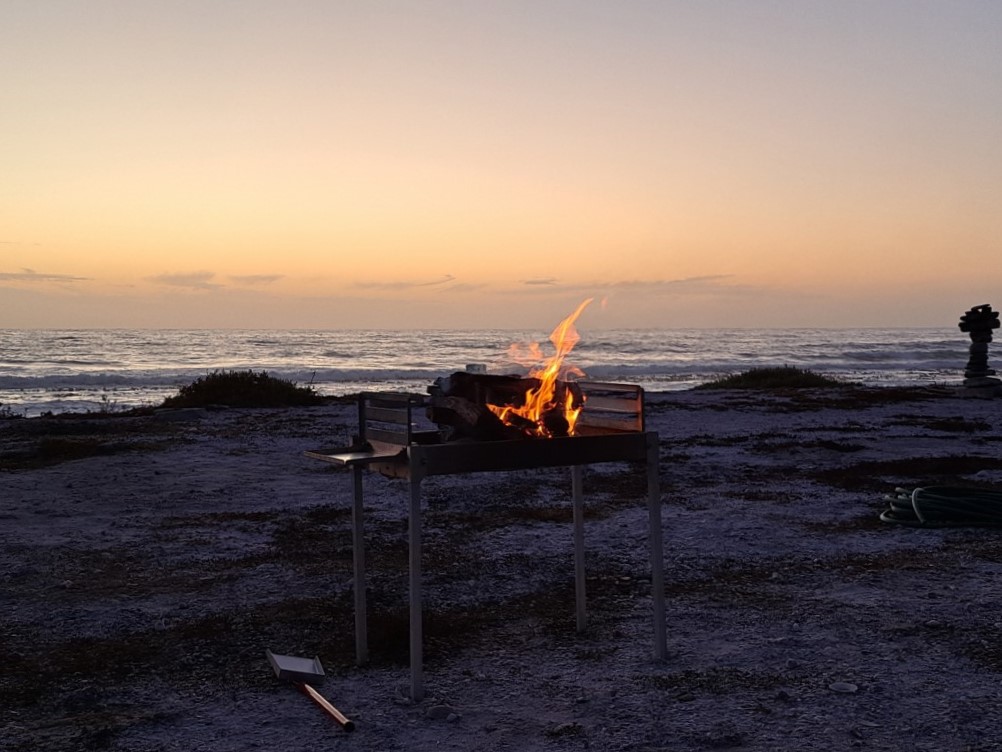 Although most of the campsites have firepits, we brought our own ‘braai’. The legs can be unscrewed, and then it’s actually very small and easy to transport. A few years ago, Berto also had a grid made that fits perfectly on the ‘braai’. Since we really enjoy cooking food on the fire, it is therefore important that we have a ‘braai’ that meets all our requirements.