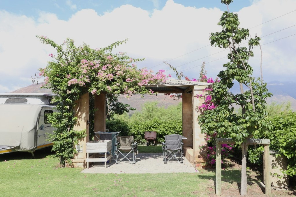At Franschhoek Camping there are only 10 campsites. Except for 2 sites (which share a bathroom), the other sites each have their own bathroom. Most of the campsites have pergolas covered with bougainvillea and the softest green grass a camper could ever wish for. There is also a ‘braai’ at each campsite, as well as an electrical point.