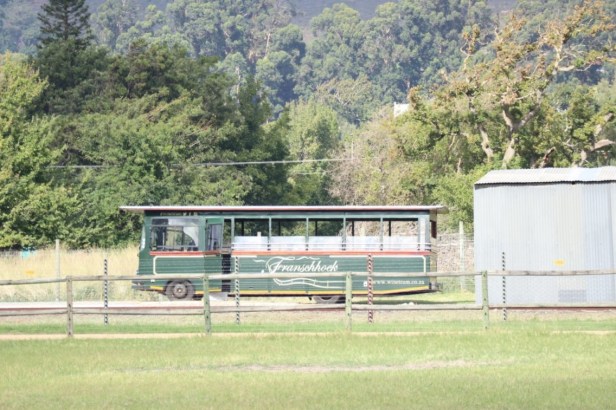 On the way to the animals, we saw a tram parked outside the farm’s main gate. This is the wine tram of Franschhoek. We have booked an excursion on the tram and will tell you more about our day at different wineries in a next post.