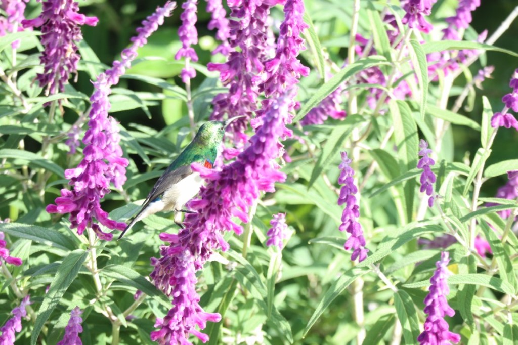 We also had the company of sunbirds every morning, searching for breakfast in the lavender bush next to our trailer.