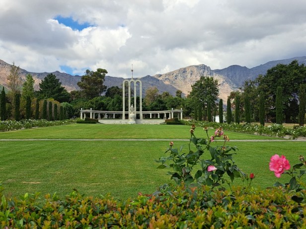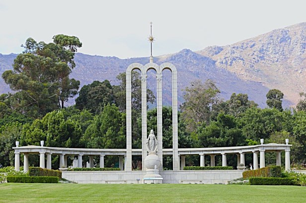 At the end of the main street is probably the most prominent monument in Franschhoek, the impressive Huguenot Monument. It is situated in a beautiful garden landscape with the Franschhoek mountains in the background.